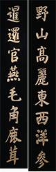 野山高丽东西洋参;暹罗官燕毛角鹿茸。此属中药名联。上联四种参的名称和产地,高丽即朝鲜,东洋参产于日本,西洋参以美国为佳;下联为泰国正宗燕窝、暹罗是泰国旧称,官方经营的称“官燕”。此联在“药局”匾额下,表明药局富有各种名贵药材,且来源广阔,地道正宗。