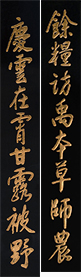 庆云在霄甘露被野;余粮访禹本草师农。此联为嵌名联。上联意为吉祥之云在天上飘悠,雨霖甘露普洒原野;下联中余粮为药用矿石,产于池泽者为禹余粮,产于山谷者为太一余粮。《雷公炮制论》:凡使禹余粮,勿用石中黄并卵石黄,此二名石真似禹余粮也。意为使用余粮这种药石,要认准禹余粮,使用草本植物要师法神农尝百草。