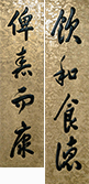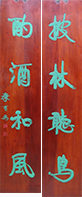 披林听鸟;酌酒和风。此联为清末民国初著名学者、思想家康有为所撰写,意为进山林寻幽静听鸟语,把盏饮酒沐临清风,这是平静而和谐的意境,心旷神怡。康有为书法学养深厚,笔法朴拙高古,耐人寻味。